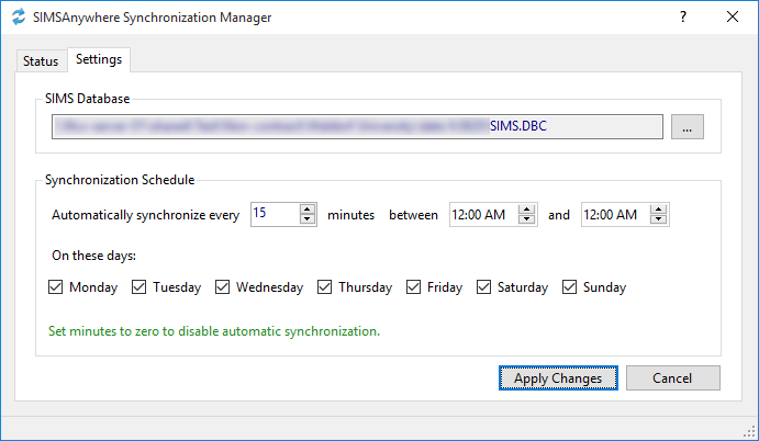 - Open SASM and reconfigure your database and synchronization settings from the Settings tab. Click Apply Changes to save your settings.