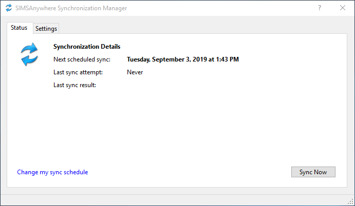 - If successful, the Status tab will no longer show the warning message, and the Sync Now button will be available.